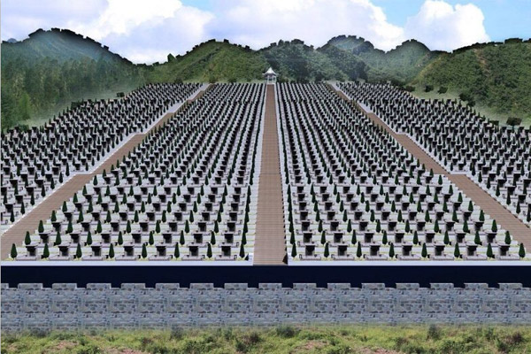 園區(qū)依山傍水,青山碧水掩映其中。石雕與槐樹根的相互輝映,傳統(tǒng)的古典建筑和現(xiàn)代化互相交替,優(yōu)雅的庭院景色配以開闊的綠樹草坪,加上秀美的園林格局以及風(fēng)格迥異的藝術(shù)浮雕,使整個陵園氣勢恢宏、風(fēng)范典雅、靈氣聚現(xiàn)。園門處聳立著八根巨型龍柱,兩只威武的漢白玉獅王鎮(zhèn)守左右;宏偉的牌樓前四只石獅臥守陵園。園內(nèi)綠樹成蔭,假山噴泉點綴其中,二十四孝長幅石雕橫跨園中,六萬多平方米的綠化、草坪、廣場(其中有一萬多平方米的大型停車場)及兩座大型放生池。毛主席時期修建的東風(fēng)渠橫跨本陵園,渠里流淌著來自******景點廣勝寺的泉水,滿目的紅花綠草、亭臺樓閣、小橋流水,自然美景映襯著人文景觀。